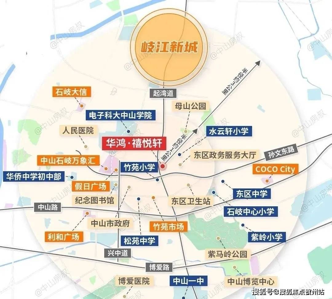 【教育】幼儿园:华凯幼儿园、中山市第一幼儿园、博文起湾幼儿园、起湾幼儿园中小学:水云轩小学、起湾小学、石岐区实验小学、石岐第一小学、火炬开发区第三小学、华侨中学、石岐中学、中山市濠头中学、白沙湾学校