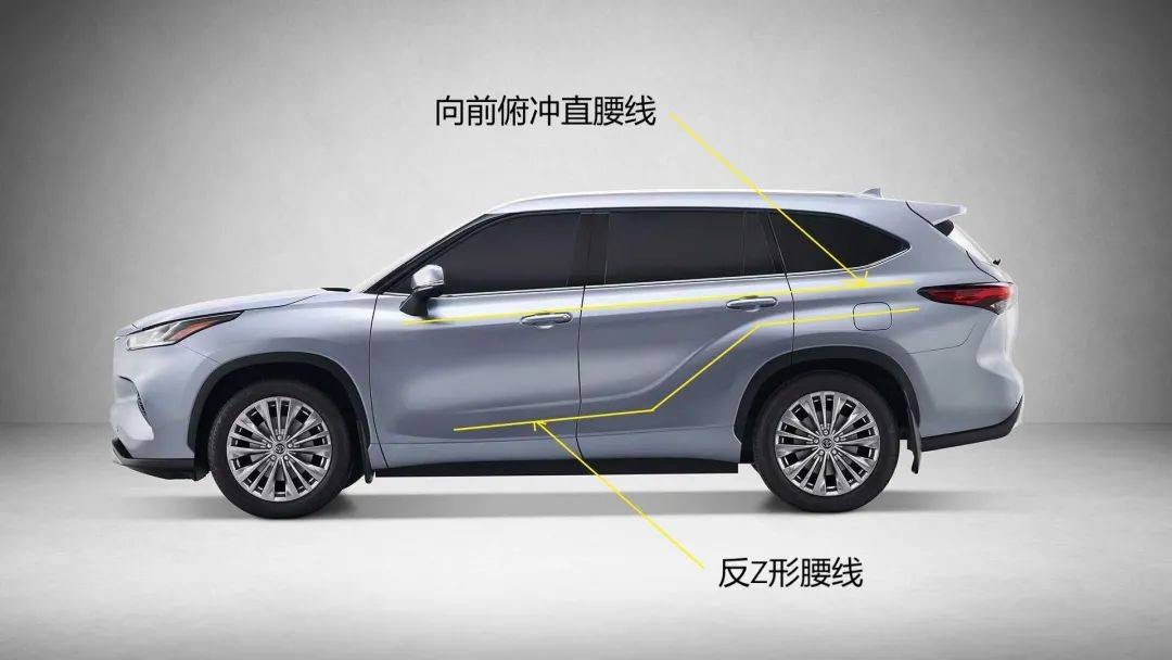 相比现款汉兰达,全新第四代汉兰达侧面多了一条凌厉的反Z形腰线,从前门下沿延伸到尾灯,并且呈现的是由弱到强再渐弱的变化。与贯通门把手的向前俯冲的直腰线形成双腰线的设计,这是时下勾勒车身立体感常用的一种设计手法。这条反Z形腰线打破了侧面车型的厚重感,将车尾的力量感凸显出来,并增添了整车的运动氛围,让整车看起来更加精神、干练。