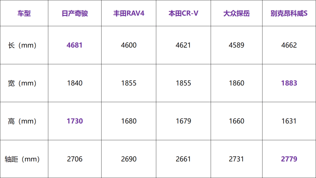 不过从整体尺寸来看,车身最短的反而是探岳,昂科威S反而比全新奇骏还要短19mm,和RAV4和CR-V相比,昂科威S的车身长度也没有特别突出的优势。