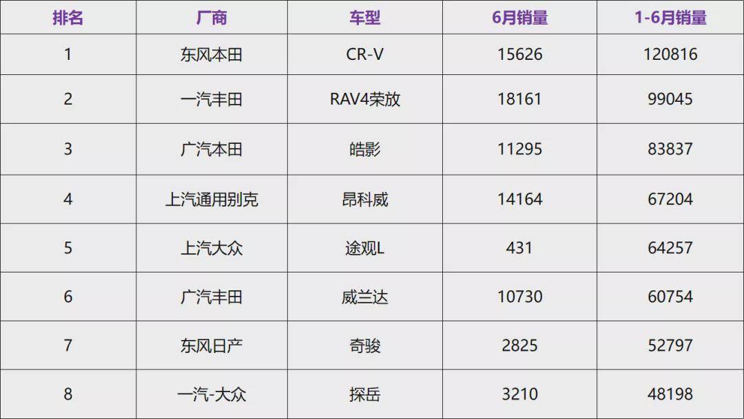 以今年上半年的累计销量为标准,目前20万元级最畅销的8款合资SUV里,日系就占了5席,而之前多年占据合资SUV榜单冠军的大众途观L,在2022款上市前空档期的影响下,累计销量已经跌出前三,而来自一汽大众的探岳,或许是受制于近期芯片短缺的影响,累计销量也排在了末尾。