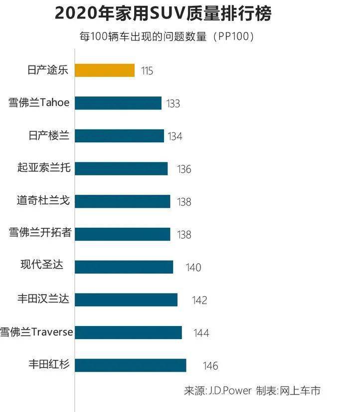 2020年十大家用SUV质量排名!日产、雪佛兰霸榜前三名