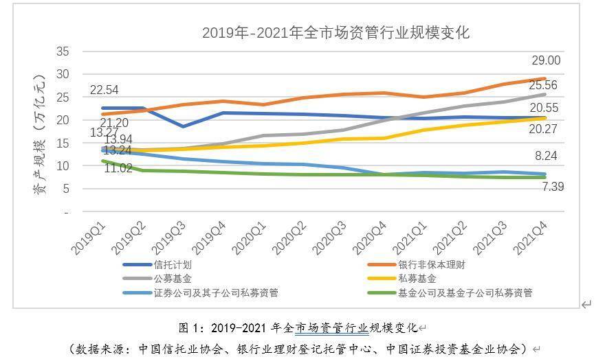 图1:2019-2021年全市场资管行业规模变化