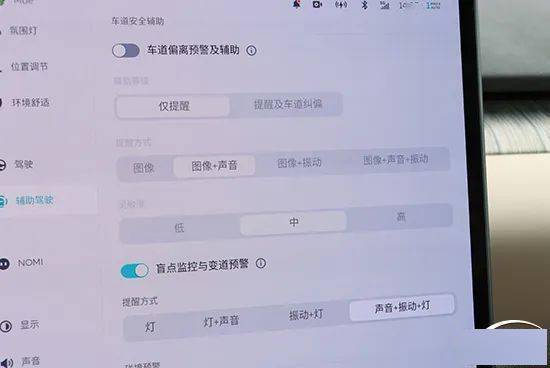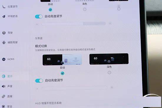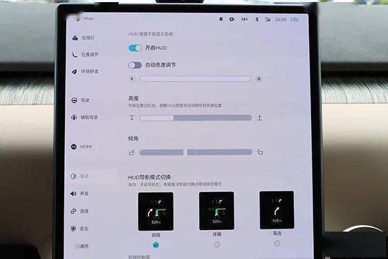 蔚来ET7提供HUD抬头显示功能,并支持角度调节,调节位置在中控屏“显示”一栏中。调节功能上支持HUD亮度、高度以及倾角调节,调节范围较大,并且清晰度不错,整体表现出色。
