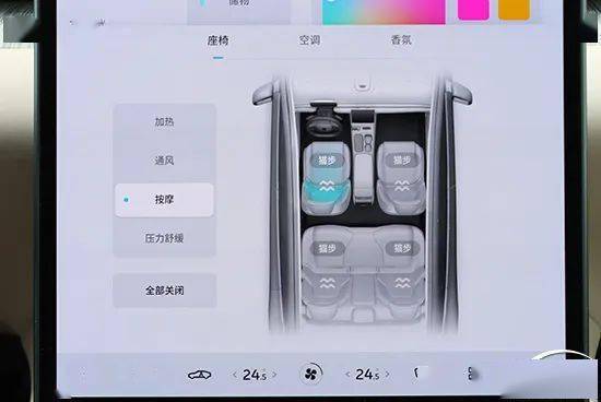 作为与“56E”相竞争的蔚来ET7,在舒适性方面非常下功夫。前排座椅支持加热、通风、按摩功能,并且在按摩功能内还支持不同种按摩方式与力度,体验感十分舒适。
