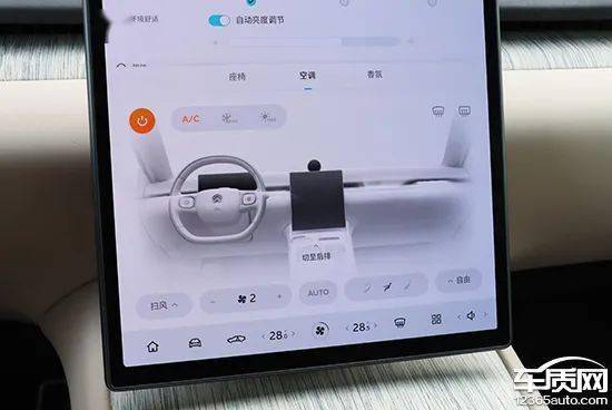 蔚来ET7的空调面板集成在车机屏幕最底端,便于驾驶者操作。进入空调界面后,风量、温度以及风向等操作也均位于空调界面的底部,位置设计合理。与此同时,蔚来ET7采用了隐藏式空调出风口,因此在左右两侧分别设置了空调智能吹风模式,例如“扫风”、“自由”等,实际体验下来吹风较为柔和,体验感舒适。