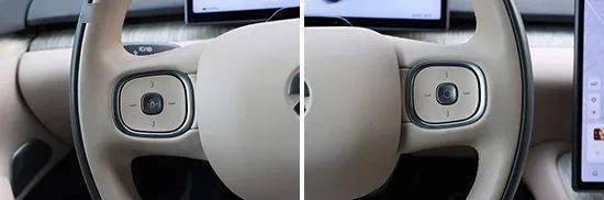 虽然大部分功能都集成在中控屏当中,但多功能方向盘按键仍采用物理按键设计,这一点比较友好,并且按键面积较大,且按键之间有一定间距,不易发生误触。值得注意的是,方向盘右侧中间的按键为“自定义”按键,可通过中控屏进行功能设置,提供唤起NOMI、360环视、一键录像、泊车辅助、方向盘调节以及后视镜调节等功能。总的来说,多功能方向盘的按键功能简单易懂,即便是初次上手,消费者也不需要太多的学习成本。