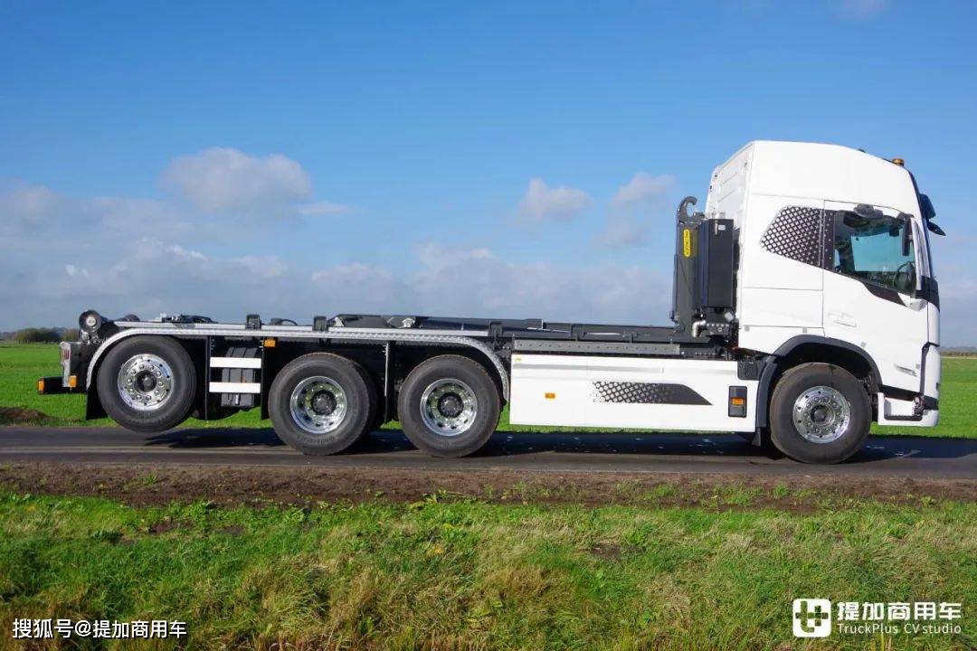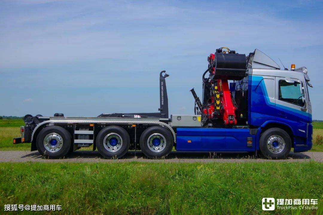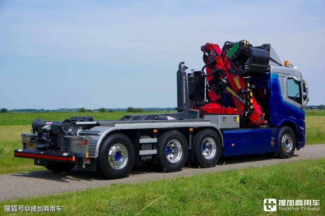 为了搭载随车起重机、拉臂钩系统等设备,Veldhuizen为车辆安装了一套液压系统。它的液压泵由沃尔沃原配的取力器进行驱动,液压油箱则采用宽度更为纤细的款式,安装于驾驶室后部,从而为随车起重机等设备让出空间。