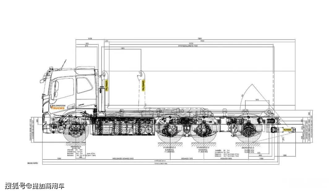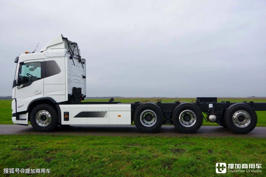 既然是要进行特殊改装,那8x4长轴距底盘自然是最佳选择,带来最高的承载能力。原车出厂时选择了Tridem的底盘形式,说简单点就是:三根后桥紧密排列在一起,从而带来最高的承载能力。与此同时,这种底盘布局能实现最长的轴距,将各类底盘附件放在一二轴之间,便于改装厂后期对底盘作出改动。