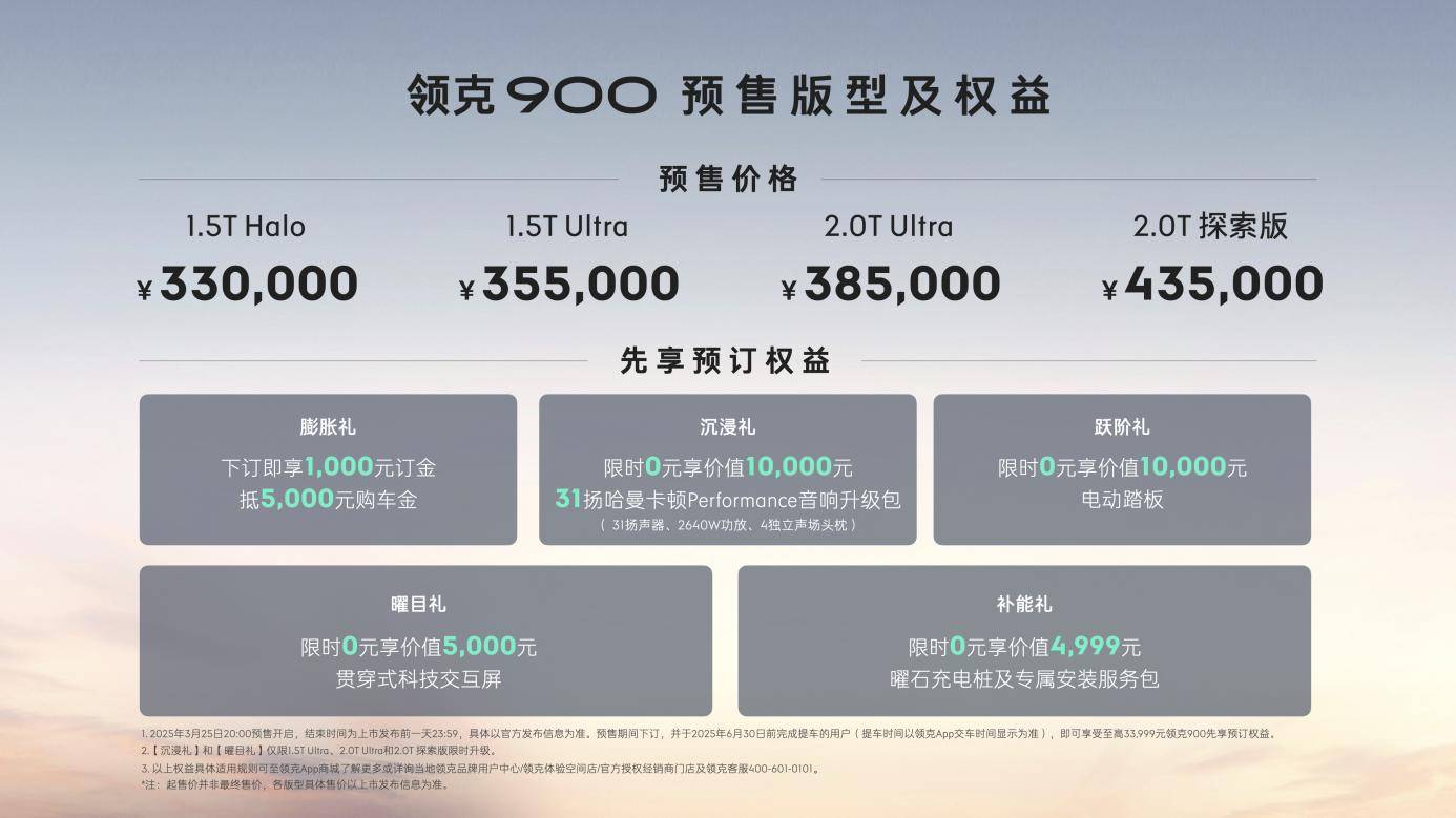目前,预订用户可享价值33,999元的礼包,新车将于4月下旬正式上市。若终端价格与配置诚意到位,领克900或将成为高端市场的一匹黑马。
