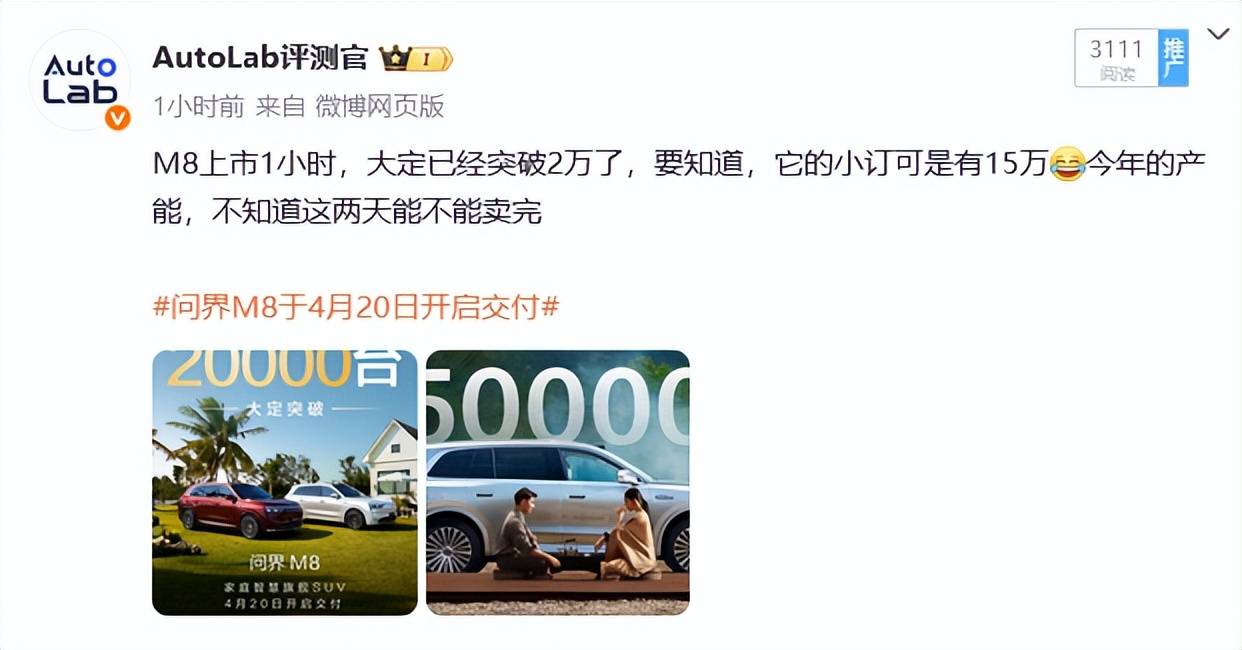 直到上个月,问界M8开启预售,在小订阶段,订单量就迅速突破15万台,刷新了问界家族的订单记录。
