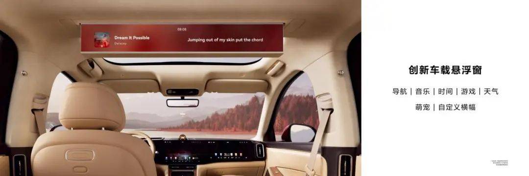 在不影响前排座椅靠背角度的同时,悬浮显示导航、歌词等信息,开门时后方来车也会有所提示,最大程度杜绝二排“开门杀”。