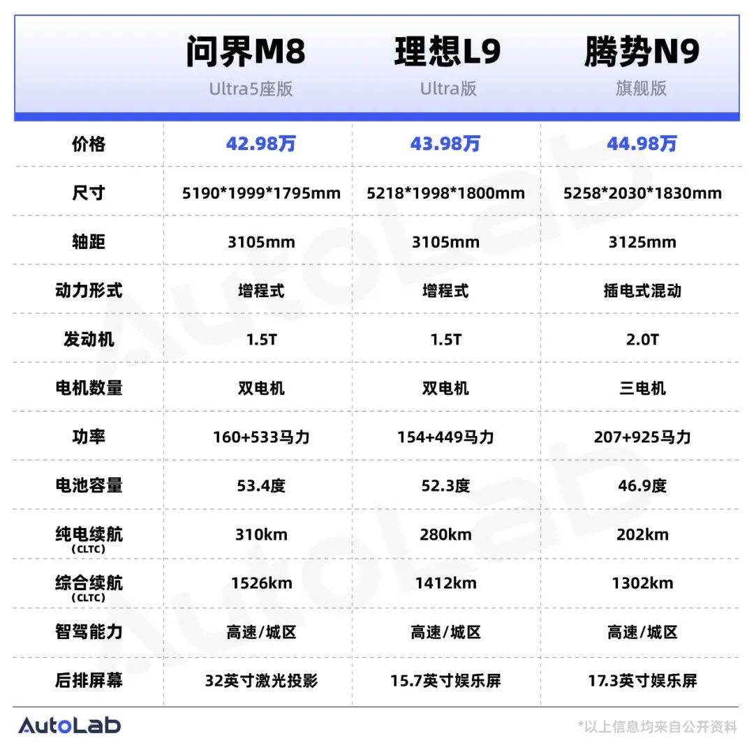 对比理想L9和腾势N9,M8最突出的优势是价格。