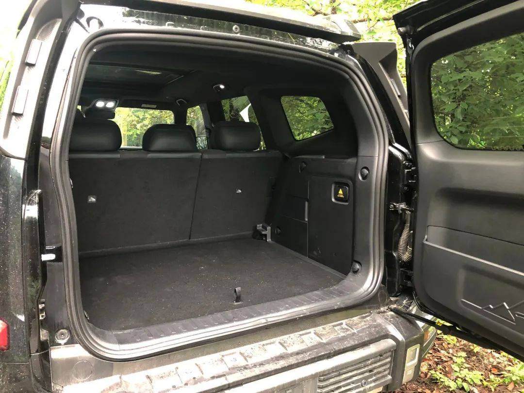 它看起来很魁梧,车身尺寸为5125/2025/1950mm(含备胎和车顶灯组),轴距为2880mm,由于车身套件的增加,所以参数上相比普通版本有小幅增加。到哪都出片——它的所到之处的确吸引了路人的目光, 先锋装甲科技新硬派的造型,自带五大拓展平台,包括硬核机盖拓展平台、行李架PLUS拓展平台、通用放电平台、伸缩式前拖钩以及1.6T后拖车钩,功能与实用性兼备。从细节上来看,无忧穿越版调整了前、后保险杠、前中网,发动机盖、车顶行李架、车顶灯、外后视镜等处的造型和配色,增强了视觉冲击力和辨识度。值得一提的是,机盖两端新增的黑色把手可以在拆卸后变成固定露营灯、拍摄装备的支架,甚至改成鱼竿固定装置,这是普通版车型很难企及的拓展用法。